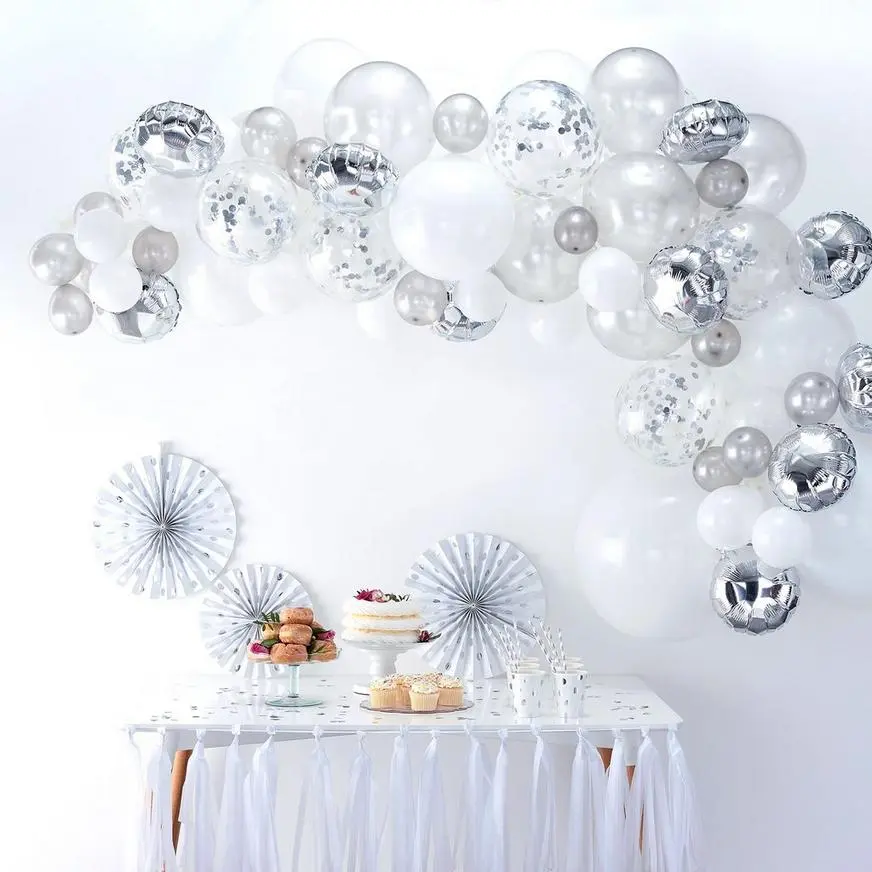 Air-Filled Ginger Ray Silver Balloon Arch Kit includes: