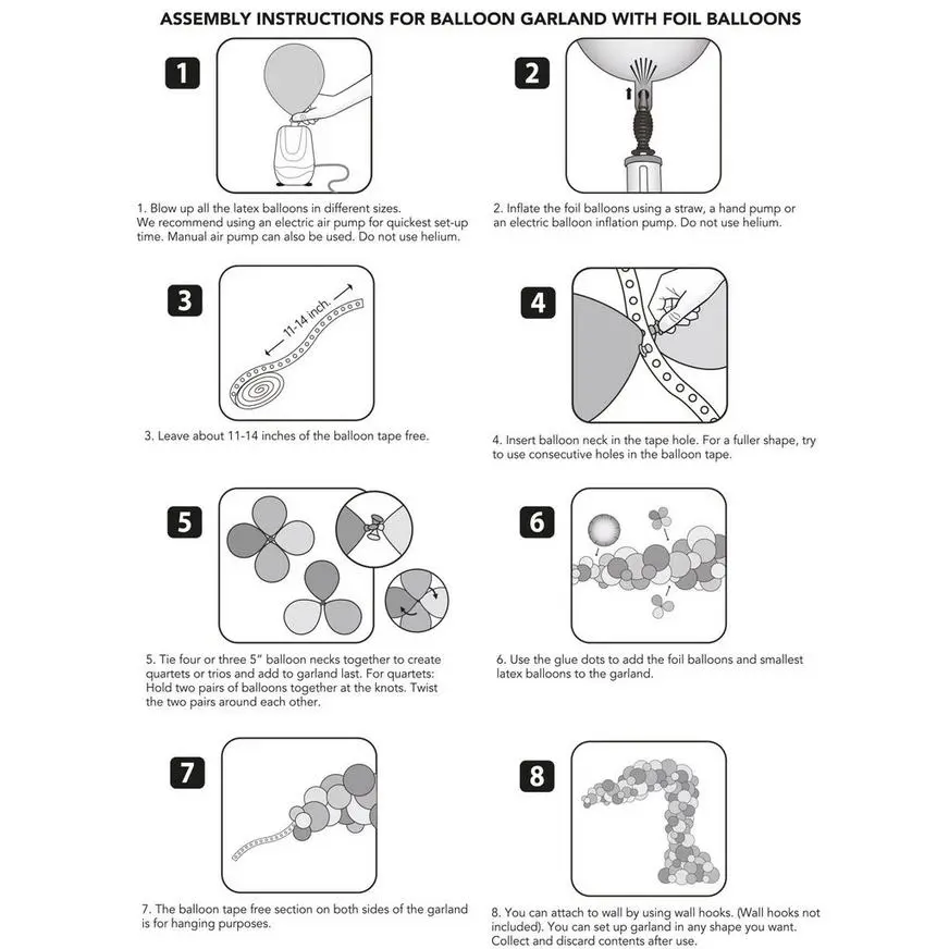 Decorating Tip: Enhance balloon garlands by adding balloon tassels, flowers, foliage, swirl decorations, and tassel garlands to balloons using tape! Accessories sold separately.