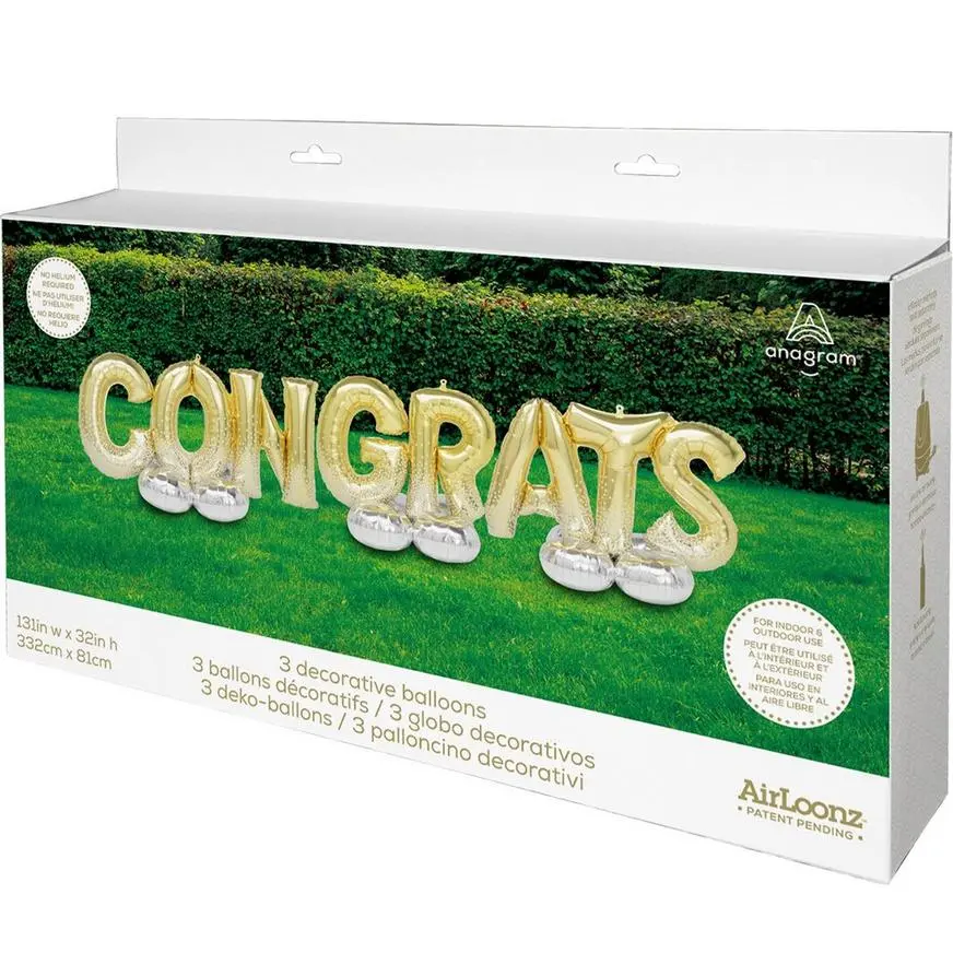 AirLoonz Gold Congrats Balloon Phrase Yard Decoration Kit product details: