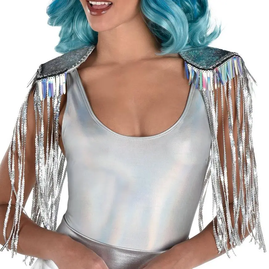 Get playful with your festival fit by accessorizing with clip-on epaulettes! They’re covered in sequins, studs, and feature a fun iridescent fringe trim.