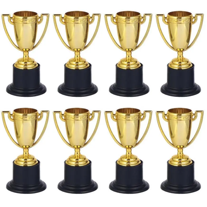 Celebrate any achievement with the Award Trophies! This trophy party favor pack features plastic gold-look trophies with a black plastic base. Hand out as awards, favors, or use as table decorations for your party champions.