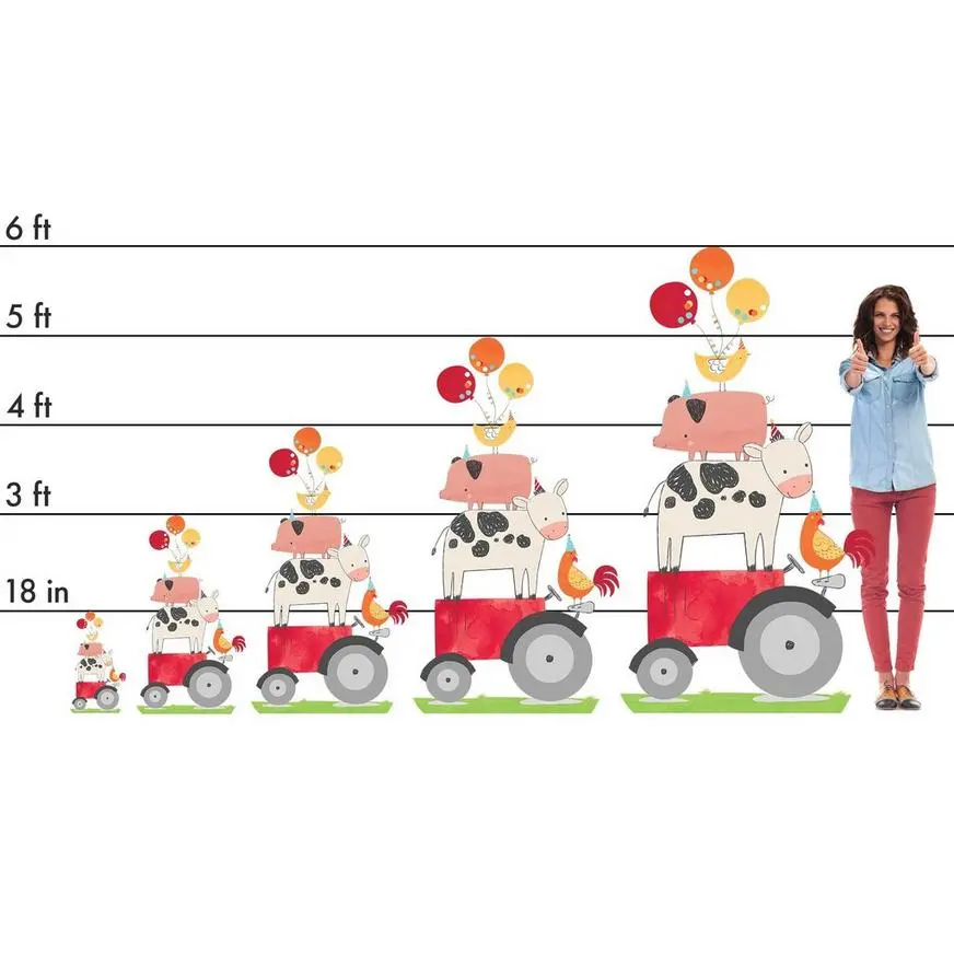Set the table with a Barnyard cardboard cutout for a picture-perfect scene. It features a red tractor adorable farm animals birthday balloons and has an easel back for support. A themed centerpiece is an easy way to bring your child’s birthday party to the next level and it can even be reused as a photo prop for your selfie station! Barnyard Centerpiece Cardboard Cutout product details: 14in wide x 11in tall Attached easel stand Assembly required Design on one side only