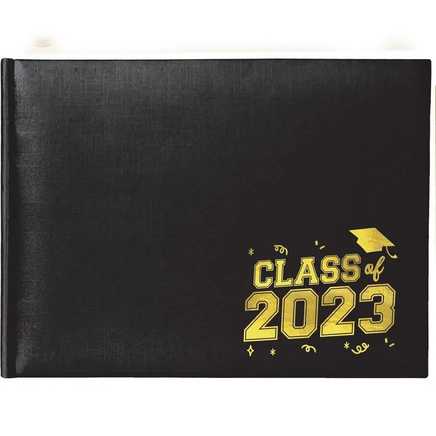 Give them the gift of memories with this classic guest book. The gold lettering on the front reads “Class of 2023.” Inside are 35 pages, printed front and back, and each page has four spaces for guests to add their name, address, and warm wishes.