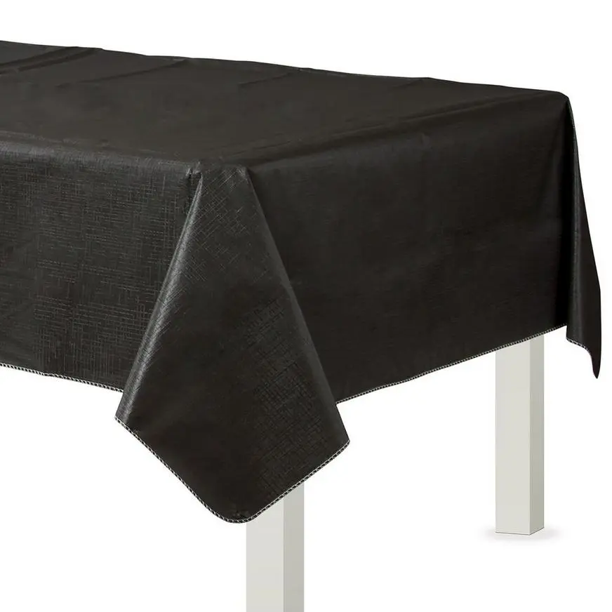 Black Flannel-Backed Vinyl Tablecloth product details: