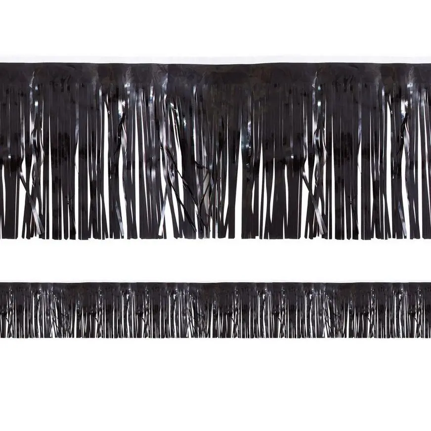 Accentuate your parade float or party decorations using this Black Fringe Decoration! This fringe decoration features long strands of black plastic. You can use this plastic fringe to add a decorative border to your float or you can use it as a table skirt at your party. Combine it with other solid color fringes to create your own unique decoration. Add some color to your black and white party, Halloween party, or any other special occasion using this plastic fringe!