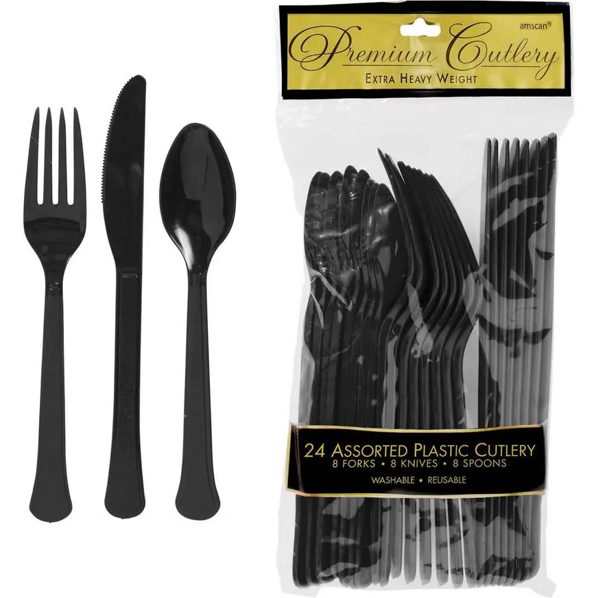 Black Premium Plastic Cutlery Set includes:
