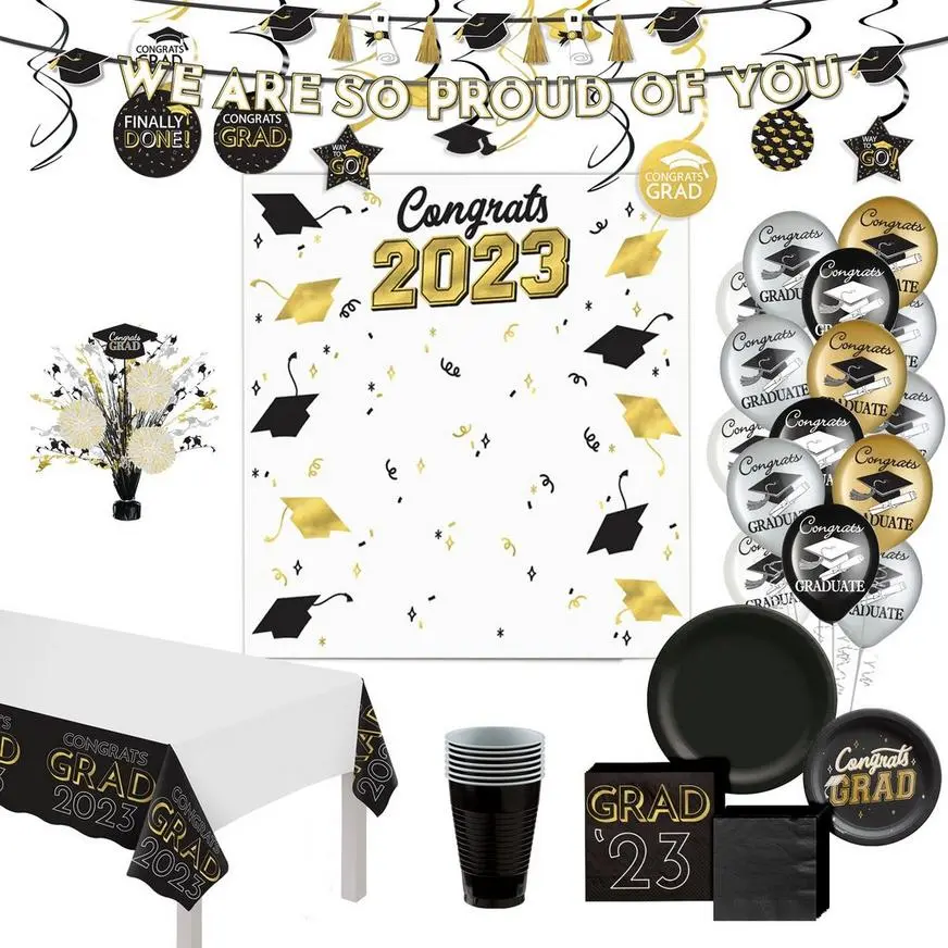 | 1 | Metallic Gold & Black Congrats 2023 Graduation Plastic Scene Setter, 5.4ft x 5.4ft (SKU 953608) |