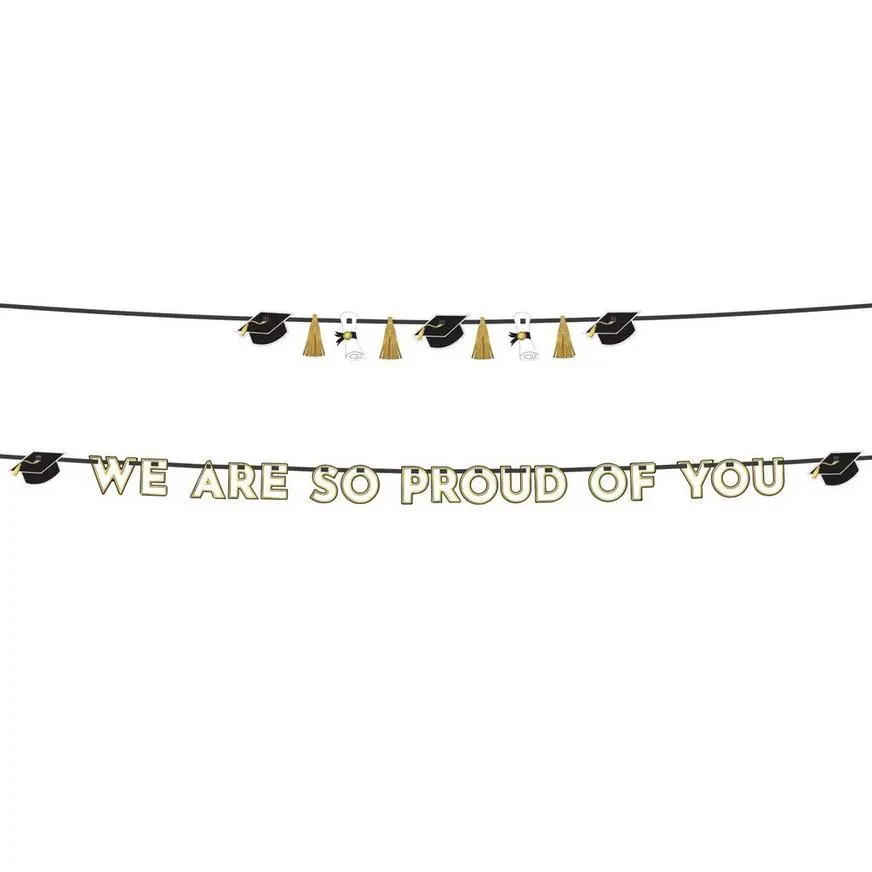 | 1 | Black, White, & Gold Proud of You Graduation Banner Set, 12ft, (SKU 953328) |