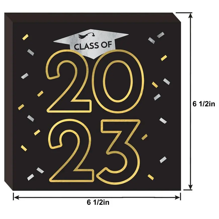 Glitter Black, Silver, & Gold Class of 2023 Graduation MDF Table Sign product details: