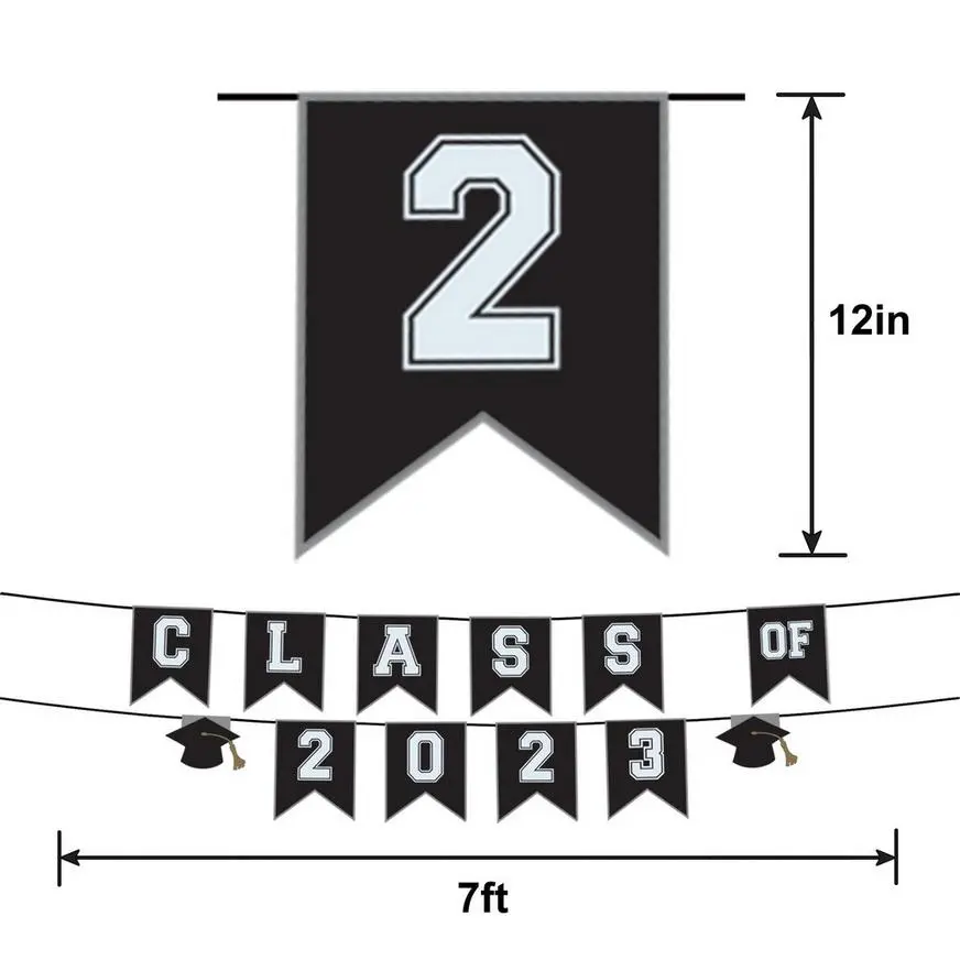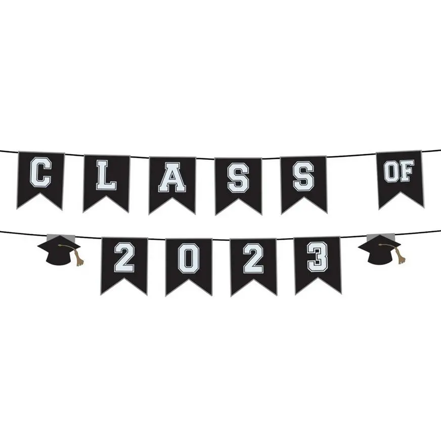 Black & White Class of 2023 Graduation Plastic Pennant Banner product details: