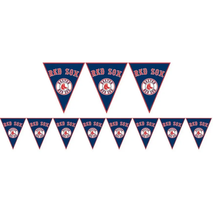 Show your Boston pride on game day with a Boston Red Sox Pennant Banner. Featuring the official Red Sox logo on a navy blue background, it’s perfect for baseball-themed parties, too. This pennant banner is made of all-weather plastic with strings on either side for easy hanging.