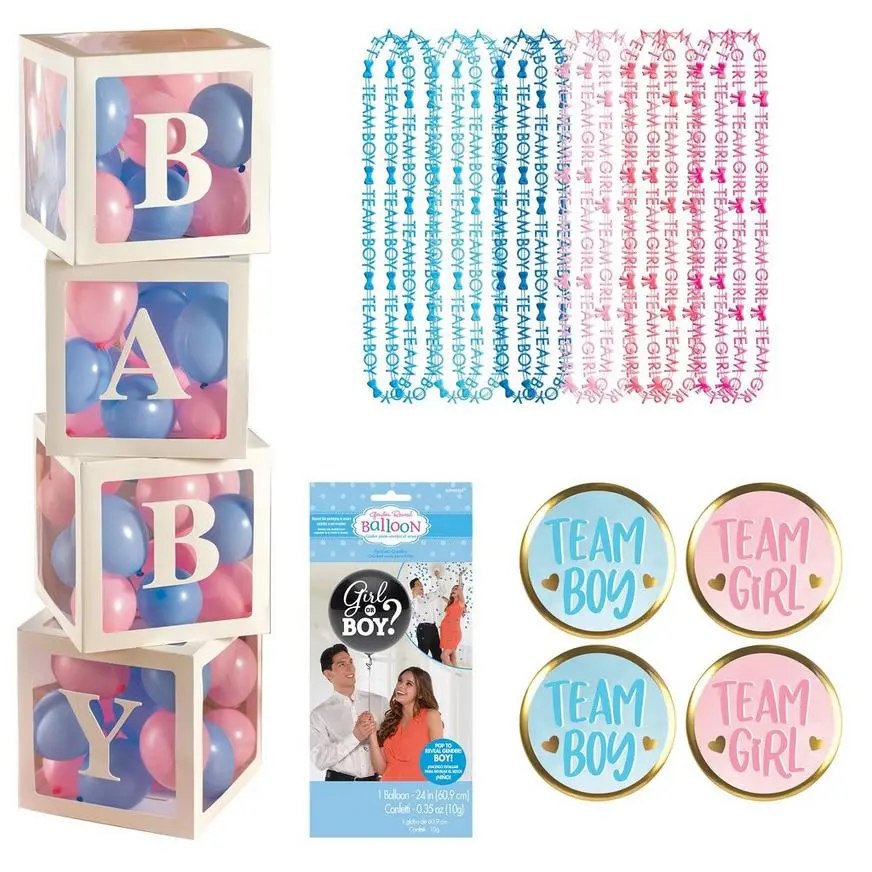 | 1 | White Pop-Up Baby Block Decorations with Blue & Pink Mini Latex Balloons, 11.75in (SKU 918787) |