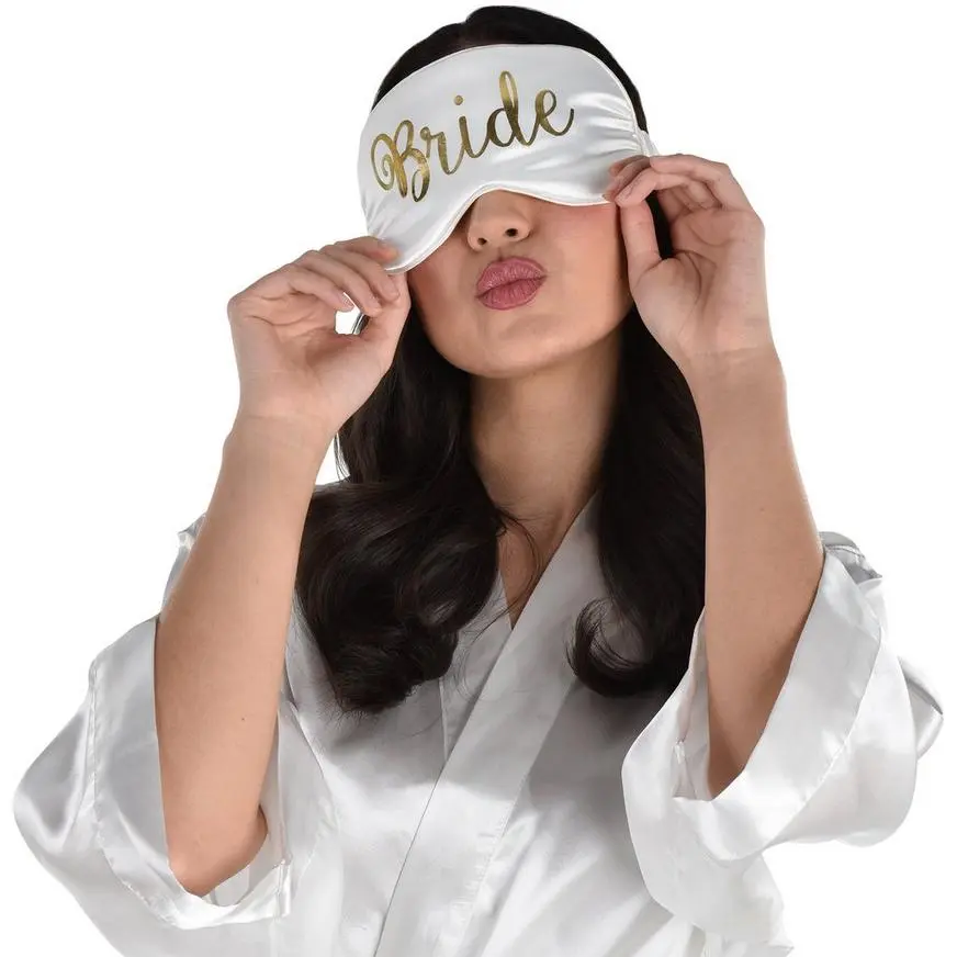 Get your bridal beauty rest before the big day! This soft, white sleep mask features the word ‘Bride’ in stylish gold lettering.