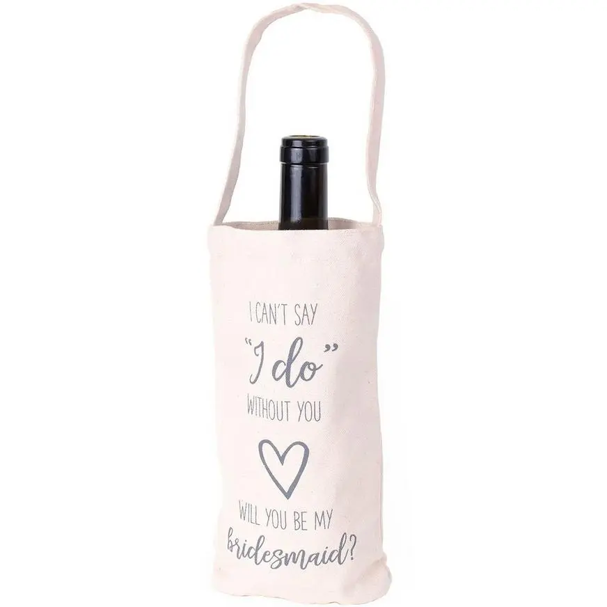 Send each one of the bridesmaids off with a bottle of wine in this Canvas Bridesmaid Wine Bag! This canvas wine bag features a silver “I Can’t Say I Do Without You Will You Be My Bridesmaid?” headline. Simply put a bottle of wine in this canvas bag to give to each one of the bridesmaids at your bridal shower!