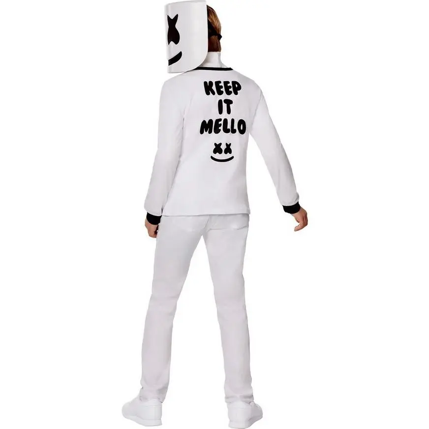 The included white long-sleeved shirt features Marshmello’s logo on the chest and a “Keep It Mellow” headline on the back. Have them top it off with the plastic mask to nail the iconic look, and they’re ready to get the Halloween party started.