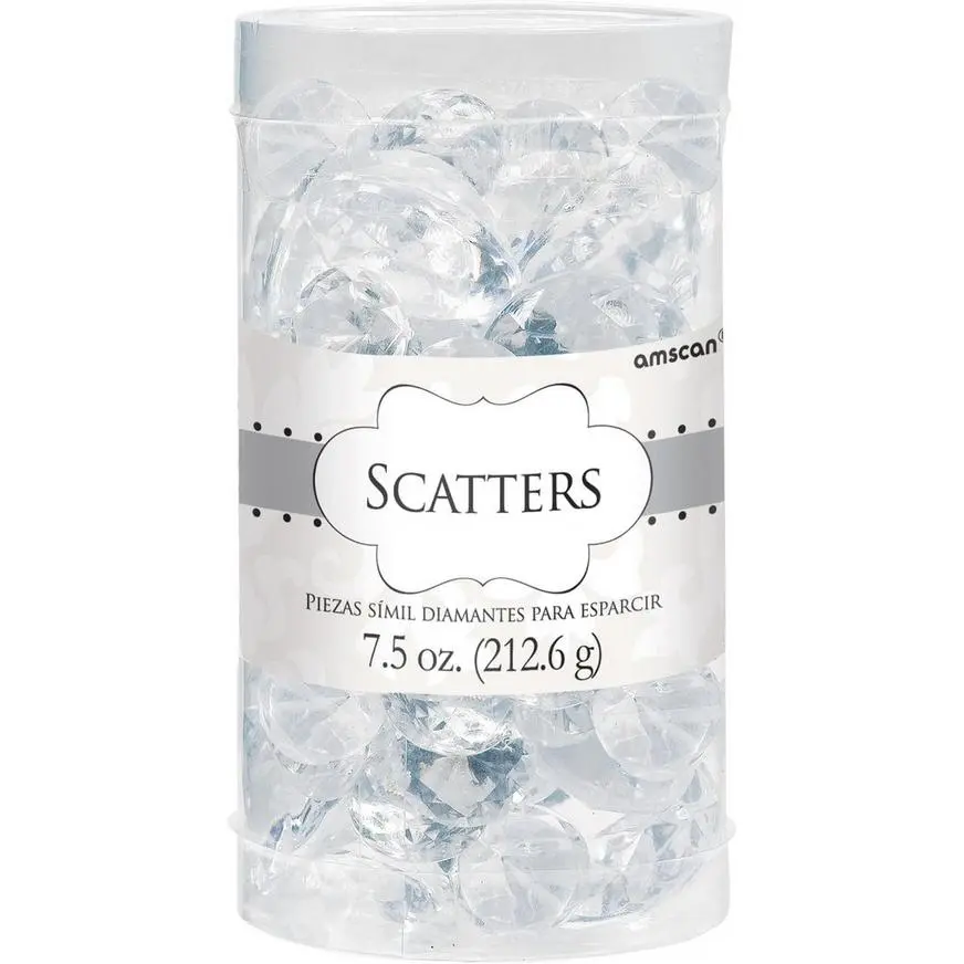 Clear Diamond Table Scatter adds sparkle to your special event. Just scatter the glittering faux diamonds around centerpieces or inside clear vases for an elegant display at your wedding or bridal shower. These acrylic diamonds come in a multiple sizes.