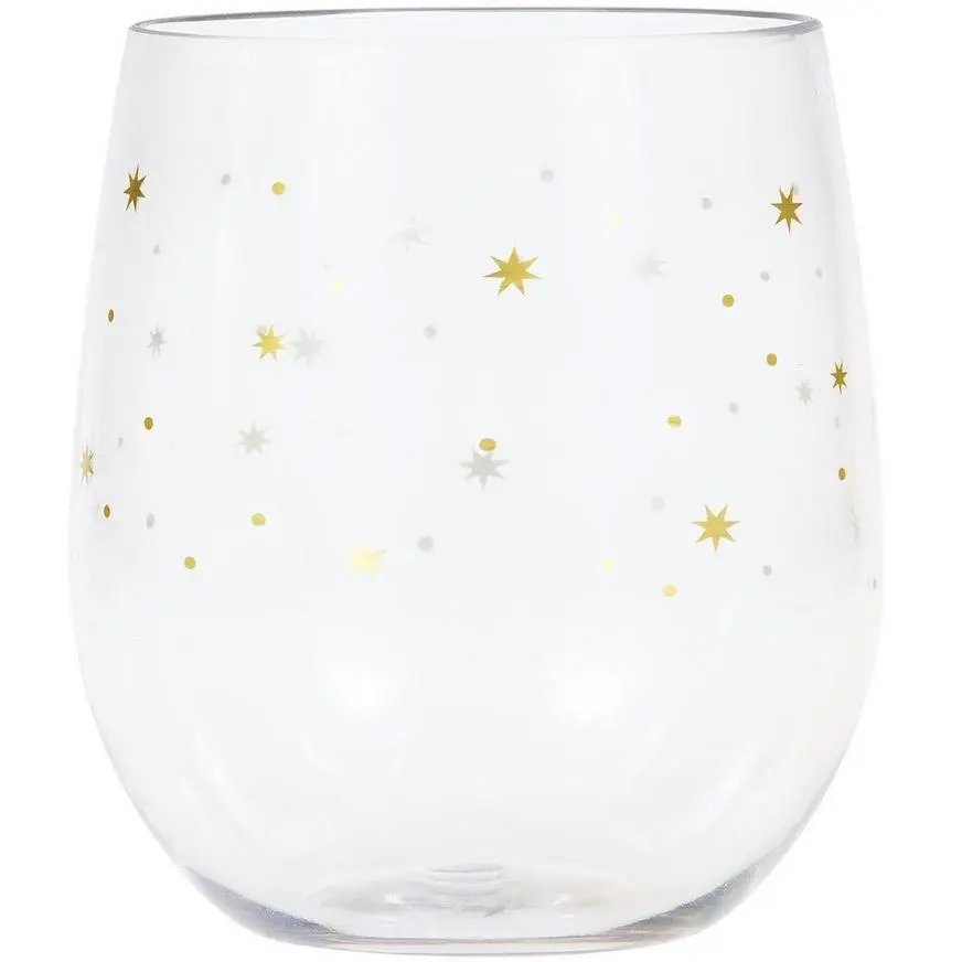Gold Stars Plastic Stemless Wine Glass product details: