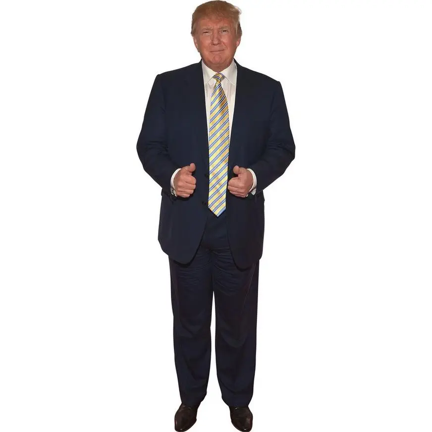 Get up close and personal with your candidate of choice with this Donald Trump standee. The cardboard cutout features an image of the politician and an easel back so it can stand up to the competition. Display it to dress up your campaign office or debate watch party. However you use it it serves as the perfect opportunity to strike a pose and show your support. Donald Trump Cardboard Cutout product details: 3ft tall Attached easel stand Assembly required Design on one side only