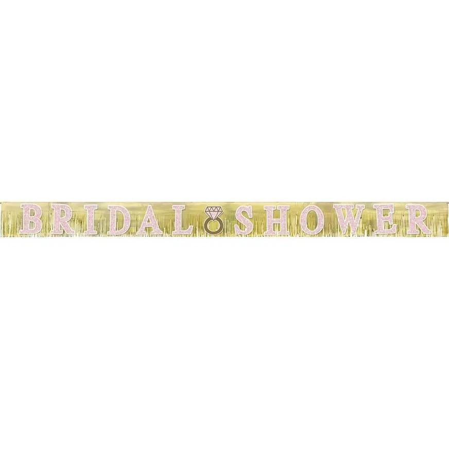 Get ready, it’s time to celebrate the bride-to-be! Our Glitter Fringe Bridal Shower Banner features glittery white letters spelling out “Bridal Shower”. Cardstock letters are attached to a long, metallic white fringe banner. Display this adorable banner to decorate your party room and announce that’s it time to celebrate. Bridal Shower Banner measures 11 1/4in tall x 10ft long.