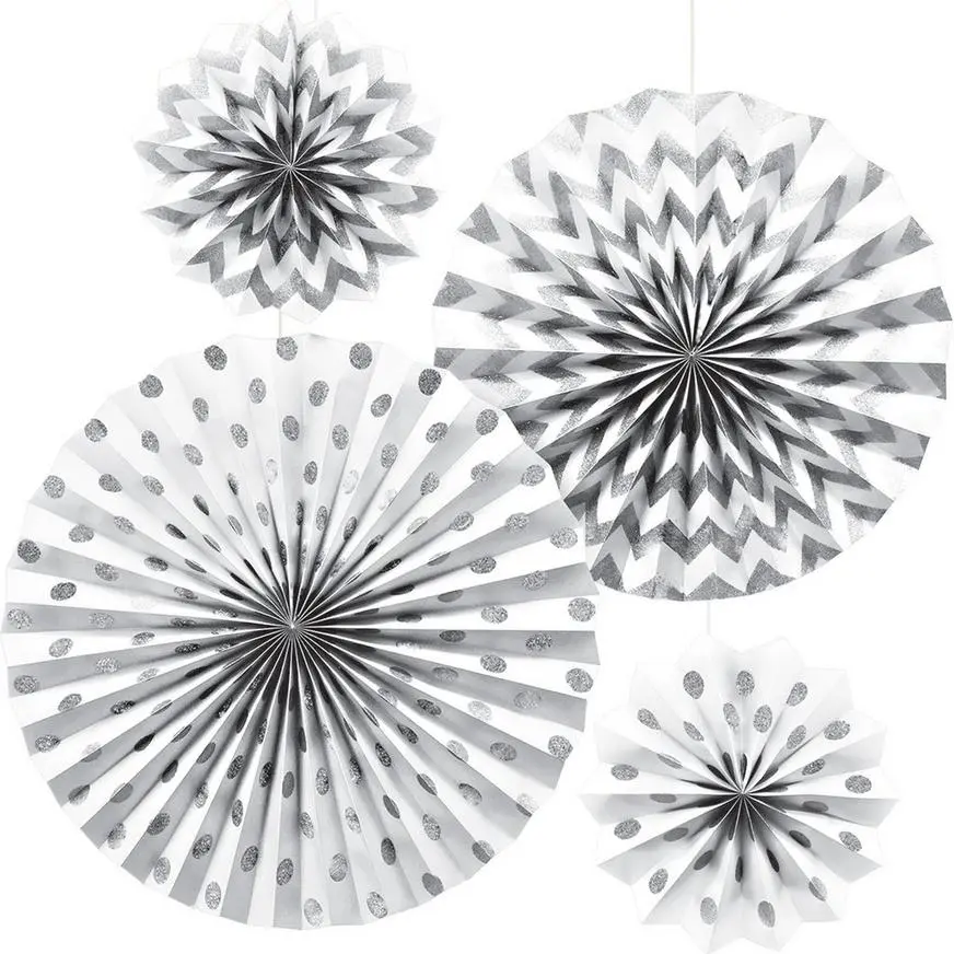 Glitter White & Silver Polka Dot & Chevron Paper Fan Decorations product details: