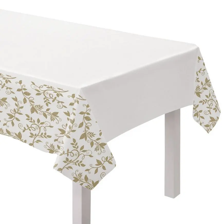 Set the stage to celebrate a love that lasts with the 50th Anniversary Table Cover! This reusable plastic table cover features gold spring grapevines winding along the skirt and a solid white center to display your special settings.