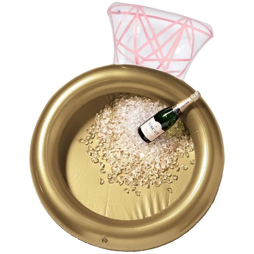 This fun inflatable tabletop cooler features a gold band, pink-detailed diamond, and bottle of bubbly. Fill it with ice and keep your engagement, wedding or bridal shower beverages chilled throughout the entire celebration.