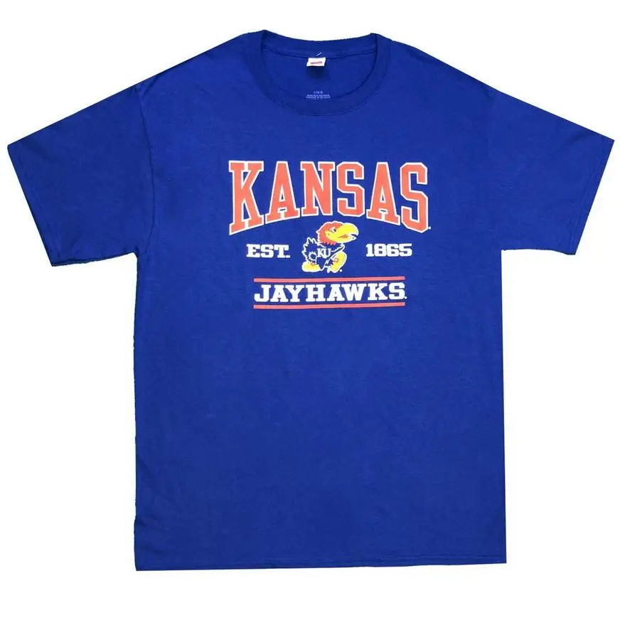 Support your school on game day by wearing a Jayhawks T-Shirt! This t-shirt features the school colors, the school logo, and a ” Jayhawks” headline. You can pair this shirt with other Jayhawks apparel and accessories to complete your game day outfit. Bring school spirit wherever you go while wearing this t-shirt! Review size chart for additional sizing information.