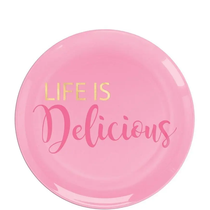 Have your cake and eat it too on these Life Is Delicious Premium Plastic Dessert Plates! These plastic plates are pink and have the words “Life Is Delicious” written on them in metallic text. They’re much sturdier than paper plates and add a great pop of color to your lunch table. Enjoy sweet treats on these small plastic plates at a bachelorette party, birthday party, or any other get-together with friends and family!