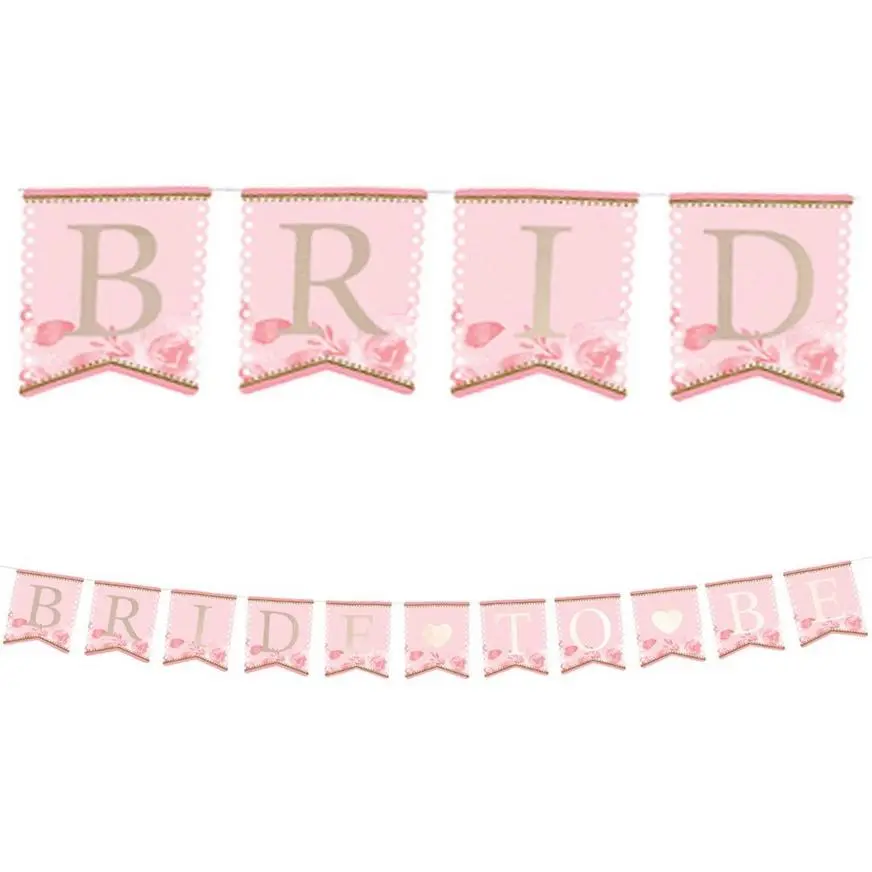 Shower her with love before the big day and celebrate with a Bride to Be Pennant Banner! This cardstock decoration comes with pennant flag cutouts in shades of pink with floral accents on the bottom. Strung together with the included ribbon, the cardstock cutouts spell out “Bride to Be” with hearts in between the words. Hang this pink decoration up at her bridal shower or bachelorette party.