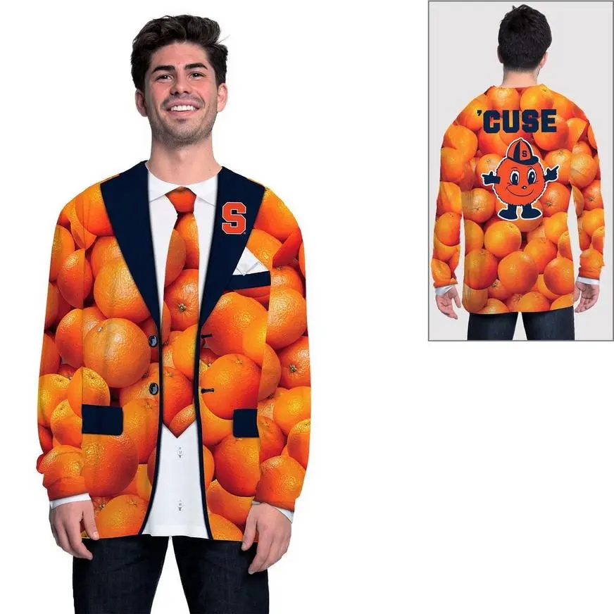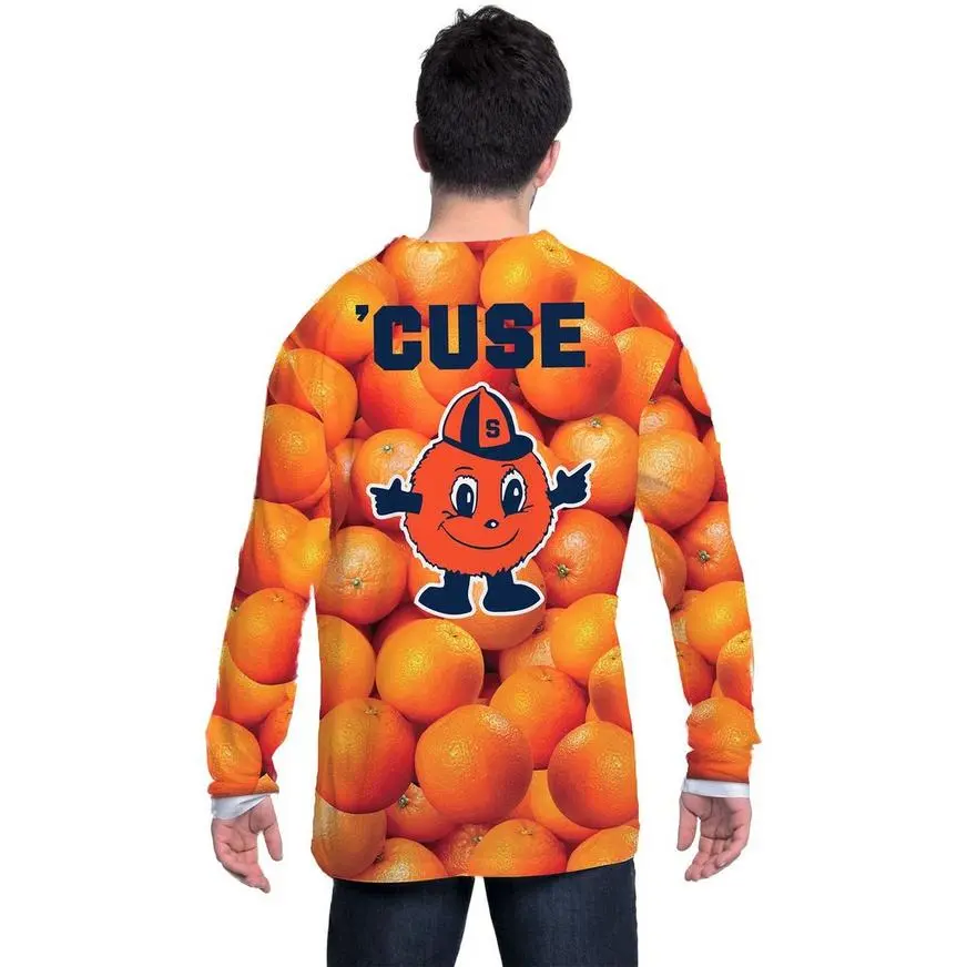 Show your school spirit in style with this Syracuse Orange Texture Suit Long-Sleeve Shirt. This soft and comfortable t-shirt has been photo-realistically printed with a suit of oranges and matching tie. GO TEAM! Review the size chart for additional sizing information.