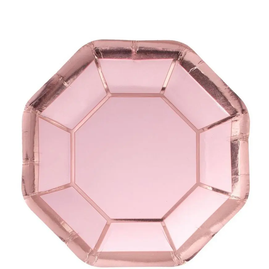 Serve up sweet treats with the Metallic Blush & Rose Gold Dessert Plates! These pink octagon-shaped plates feature metallic rose gold color. Place these cute dessert plates at a dessert bar or with appetizers for guests to eat on. The Metallic Blush & Rose Gold Dessert Plates are perfect for bachelorette parties, bridal showers, engagement parties, and more!