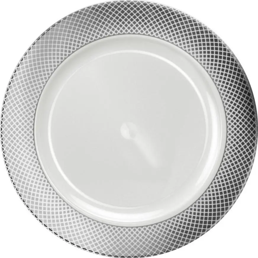 Metallic Silver Crisscross Border Premium Plastic Chargers product details: