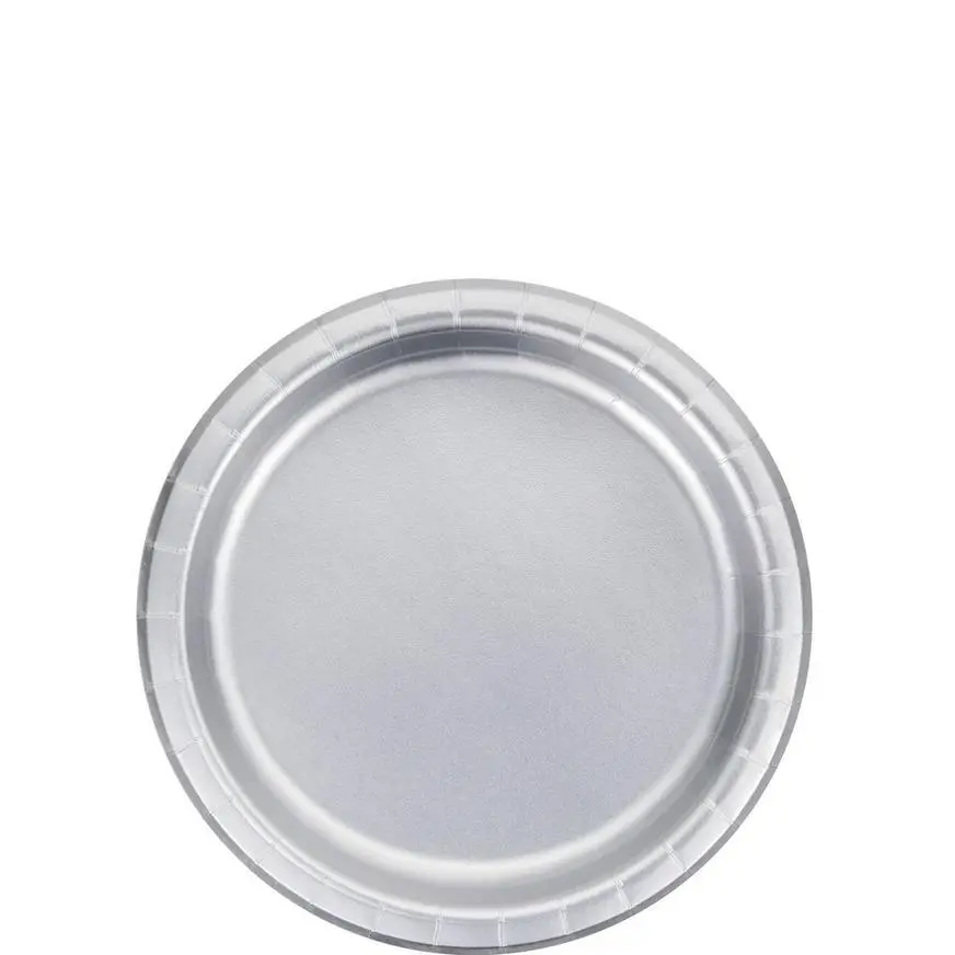 Serve sweets in style with Metallic Silver Dessert Plates! These small paper plates have a deeper rim than standard plates and are solid silver with a metallic finish. Set these paper plates near the dessert table or at each place setting for an eye-catching touch. They’re also perfect for finger foods and appetizers during your cocktail party, holiday party, or special event.