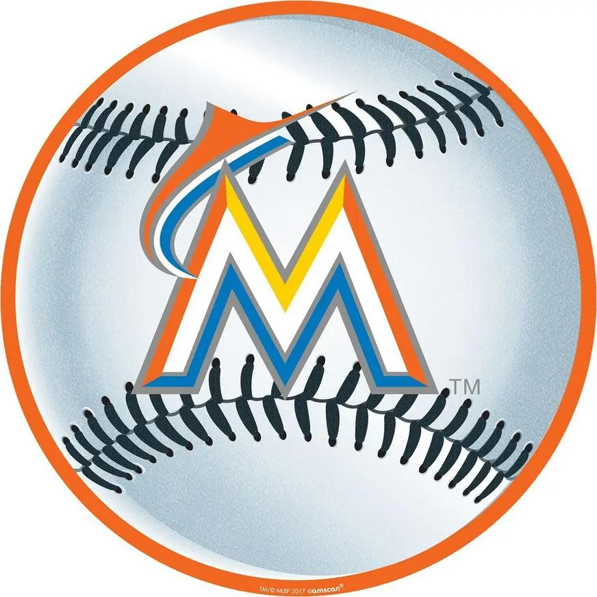 Show your team spirit! This Miami Marlins Cutout features the official team logo and colors on a die-cut cardstock baseball with a detachable hanging clip. This one-sided, lightweight decoration can be attached to a wall or window with double-sided tape or Sticky Tack (sold separately) or hung from the ceiling. Perfect for showing your love for the Marlins on game day or at baseball-themed parties!
