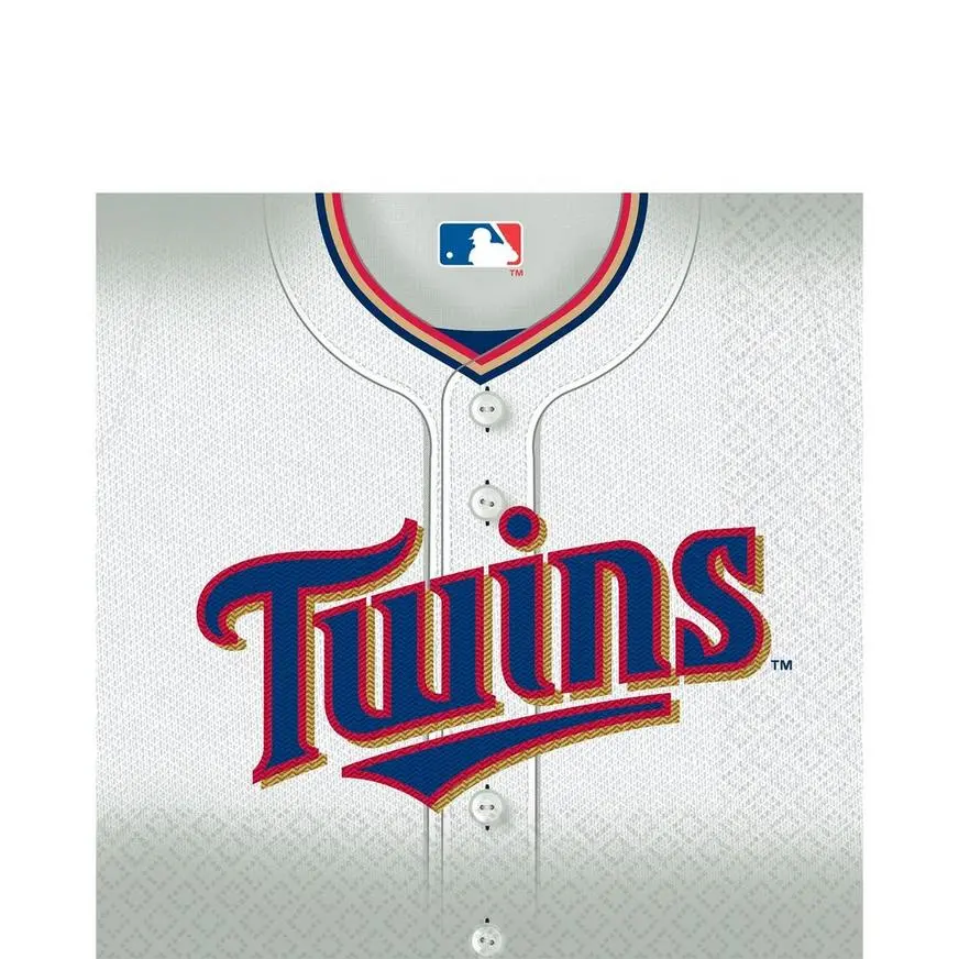 Get ready to tailgate! Minnesota Twins Lunch Napkins protect your game day outfit from ketchup and crumbs. These 2-ply paper napkins look like an official home team jersey with MLB and Twins logos. Keep a stack on your table at your baseball-themed party.