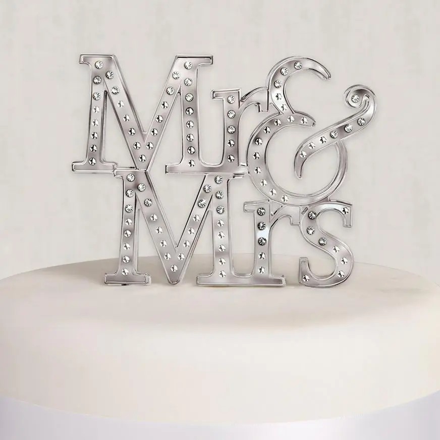 Now your wedding cake can pronounce you husband and wife with a Mr. & Mrs. Wedding Cake Topper! This electroplated plastic wedding cake decoration spells out “Mr & Mrs” in metallic silver letters accented with rhinestones for extra glam. Two picks extend from the bottom to keep it upright. You two make the perfect match — and so do this cake topper and your wedding cake!