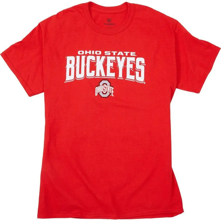 Support your school on game day in an Ohio State Buckeyes T-Shirt! The Ohio State cotton tee features the school colors, the school logo, and an “Ohio State Buckeyes” headline. Pair this shirt with other Ohio State Buckeyes apparel and accessories to complete your game day outfit. Bring school spirit wherever you go while wearing this sports T-shirt! Review size chart for additional sizing information.