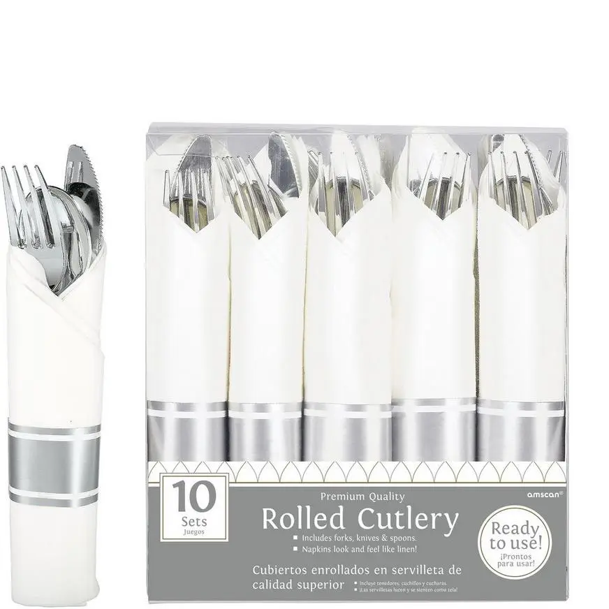 | 20 | Rolled Silver Premium Plastic Cutlery Sets (SKU 681188) |