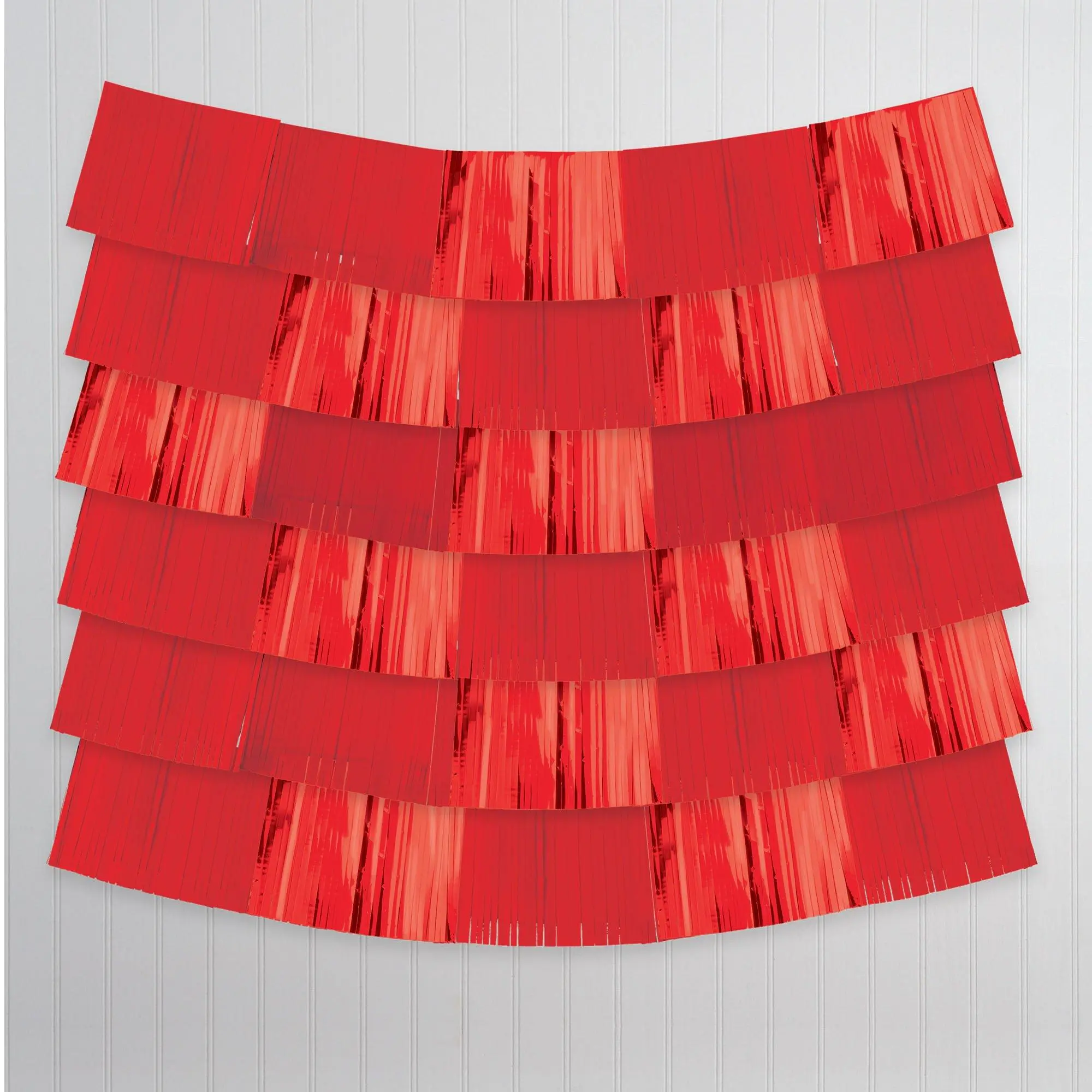 Create a shimmering backdrop with red foil fringe banners! Featuring metallic red and solid red plastic fringe, these banners make an eye-catching photo backdrop.