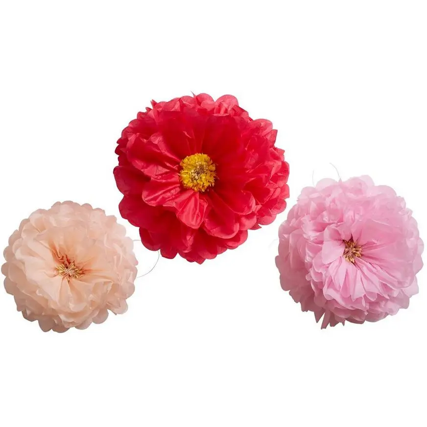 Love will bloom at your wedding event with Rustic Flower Decorations. This package of floral decorations includes three different sizes of paper flowers. One paper decoration is dark pink, one is light pink, and one is peach colored. These wedding decorations are perfect for a tea party bridal shower, engagement party, or any wedding event leading up to your big day.