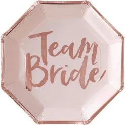 Ginger Ray Metallic Rose Gold Floral Team Bride Lunch Plates 8ct