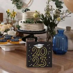 Black, Silver, & Gold Class Of 2023 Graduation MDF Table Sign, 11.9in X 7.75in