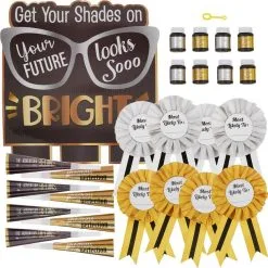 Black, Silver & Gold Bright Future Graduation Party Kit For 8 Guests