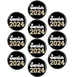 Metallic Gold Senior 2024 Graduation Buttons, 2in, 10ct