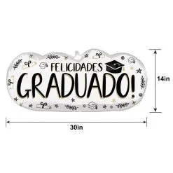 Sketched Impressions Felicidades Graduado Phrase Foil Balloon, 30in X 14in