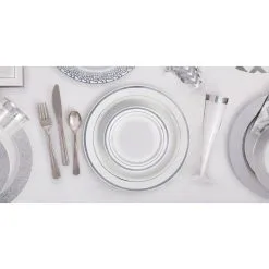 White With Silver Rim Premium Plastic Dinner Plates, 10.25in, 20ct