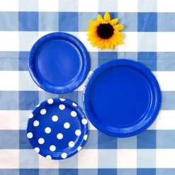Glitter Royal Blue Polka Dot & Chevron Paper Fan Decorations, 4ct