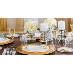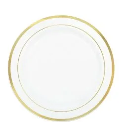White With Gold Rim Premium Plastic Dinner Plates, 10.25in, 20ct