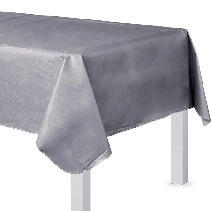 Silver Flannel-Backed Vinyl Tablecloth product details: