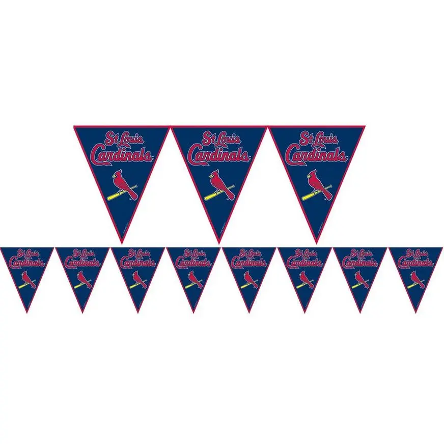 Show your St. Louis pride on game day with a St. Louis Cardinals Pennant Banner. Featuring the official Cardinals logo on a navy blue background, it’s perfect for baseball-themed parties, too. This pennant banner is made of all-weather plastic with strings on either side for easy hanging.